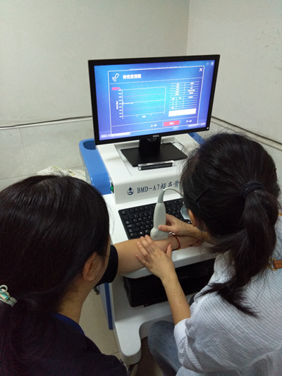 超聲骨密度測量系統(tǒng)是超聲診斷學(xué)范疇中的一項專門技術(shù), 主要利用骨質(zhì)對超聲衰減度和聲速的變化來進行無創(chuàng)、無損、無輻射檢測人體骨密度、骨強度等生理學(xué)參數(shù), 對兒童生理發(fā)育,成人骨損、骨折風(fēng)險的預(yù)防有很大的參考價值和指導(dǎo)價值, 為骨質(zhì)疏松疾病提供一種先進的診斷手段。該法操作簡便、安全無害、價格便宜、所用的儀器為兒童骨密度儀,和做B超一樣抹一點耦合劑,之后就有一個手柄式探頭對準骨頭部位進行掃描即可,大約需要3到5分鐘。